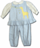 Funtasia Too Baby Girls Clothes Gentle Giraffe very soft cotton white long sleeve blouse with ric rac collar and light blue popover set with embroidered yellow giraffe and blue bird. Pretty and charming.