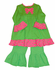 Luigi Hot Pink Bow Dress with Bringht Green and Ruffle Hem and Sleeves and Matching PINK POLKA DOT (LIKE RUFFLE not green))Leggings. Peruvian pima cotton.