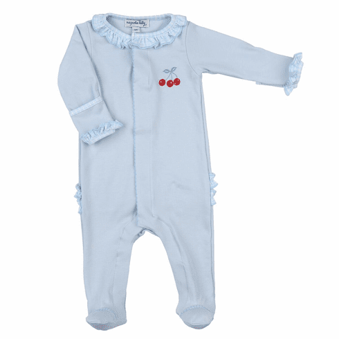 Magnolia Baby Sweet Cherries Sky Blue Emb.Footie. Infant