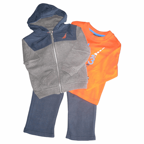 Nautica Three Piece Set with Fleece Jacket, Orange Knit Shirt and Fleece Pants. Great buy!