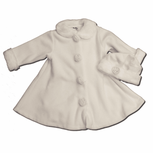 Petes Partner very soft polar fleece ivory fur trim rose placket coat with matching hat. Warm and absolutely darling baby girl coat.